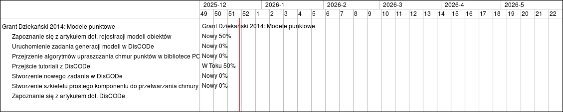 Zadanie #2214: Zapoznanie się z artykułem dot. rejestracji modeli obiektów Zadanie #2217: Przejrzenie algorytmów upraszczania chmur punktów w bibliotece PCL Zadanie #2220: Stworzenie szkieletu prostego komponentu do przetwarzania chmury punktów